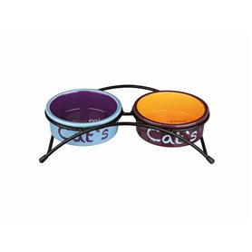 Mangeoir pour animaux Double 24,5 x 11 x 52,5 cm Argenté Acier inoxydable 2,6 L (2 x 2600 ml)