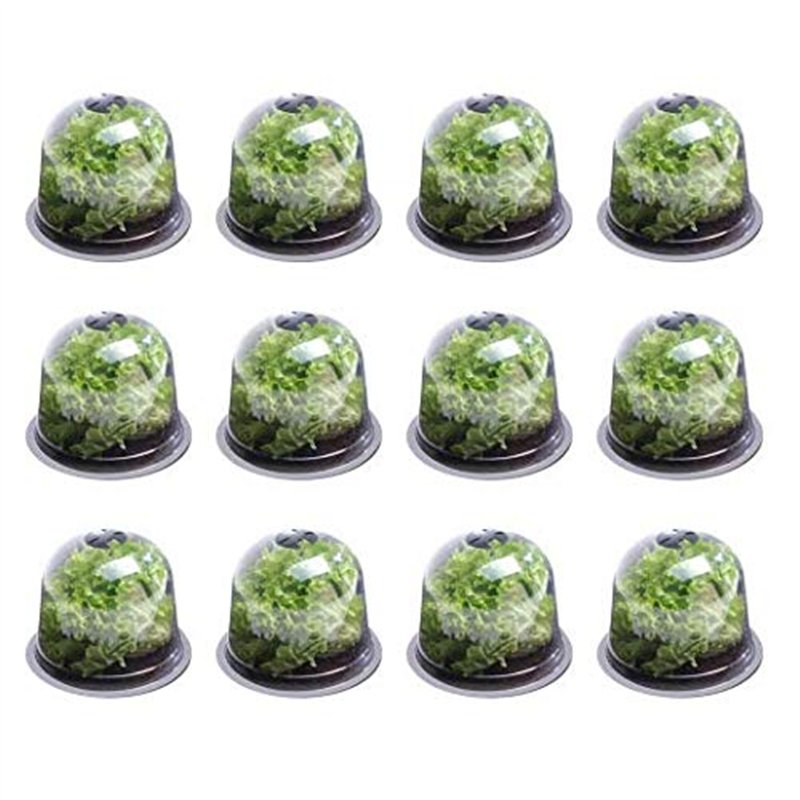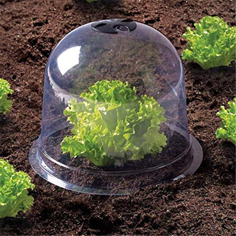 Protégez vos plantations de salades ainsi que vos plants et semis avec ce lot de 12 cloches ! Leur matière plastique transparente laisse passer la lumière et agit comme une serre. Ajustez l'aération de la cloche à votre convenance grâce à un système d'aération réglable. Les cloches sont également faites pour protéger contre les nuisibles et les intempéries !